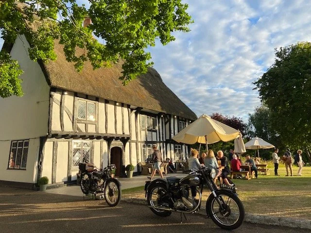 Dogs are always welcome in the pub area, where one can also eat if tables are available. The garden to the front on the green or to the left under the oak and walnut trees are wonderful spots to enjoy our hospitality.